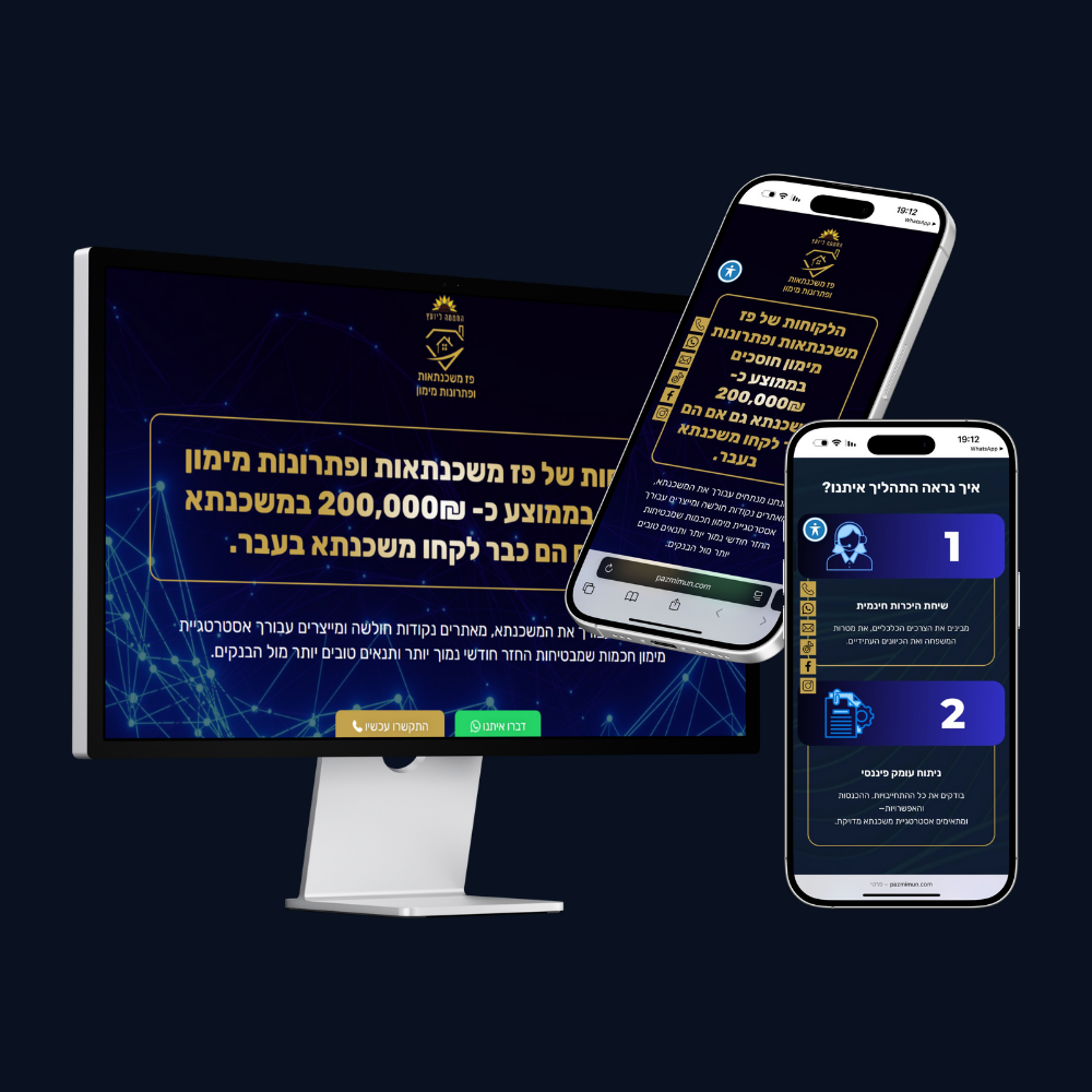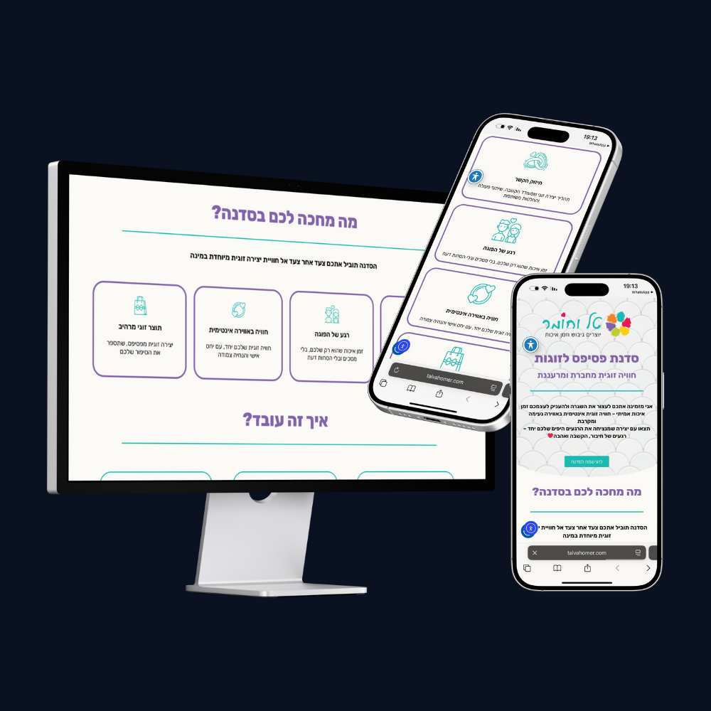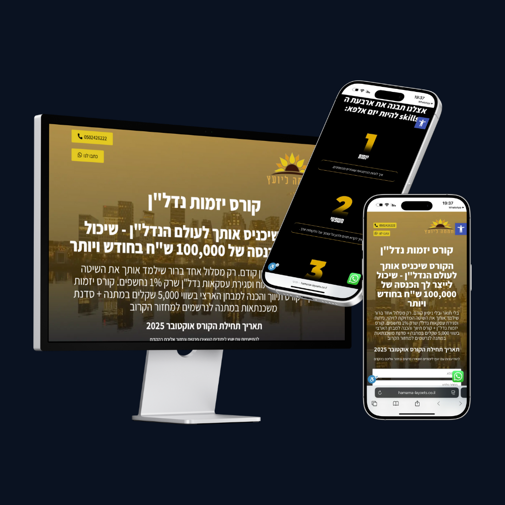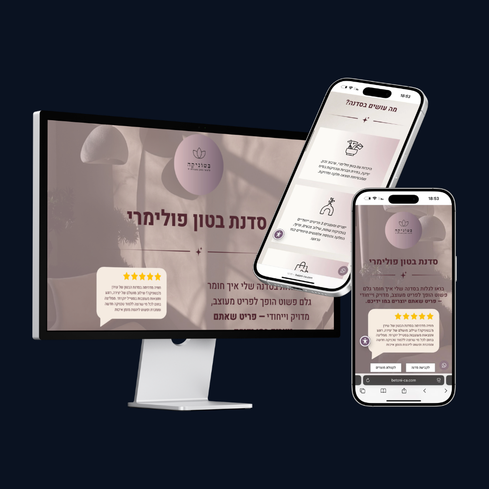 בעולם שבו כולם שופטים לפי מראה ויזואלי, אין דבר יותר חשוב מדף שמעוצב נכון בצורה מקצועית, מציג אותך כבעל עסק מומחה בתחום! עיצוב רספונסיבי מלא המבטיח שיראו את הדף בצורה מושלמת מכל מכשיר.